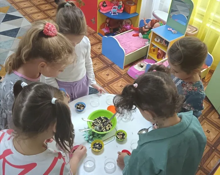 Это праздник, который призывает позаботиться о зимующих птицах. В этот день люди развешивают кормушки и готовят для пернатых полезную подкормку на зиму: семечки подсолнечника, арахиса, тыквы, просо и несолёное сало. Воспитатели группы рассказали детям о том ,что:
