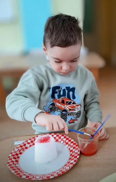 Далее в процессе наблюдения ребята увидели, что в тепле снег тает, превращаясь в воду.