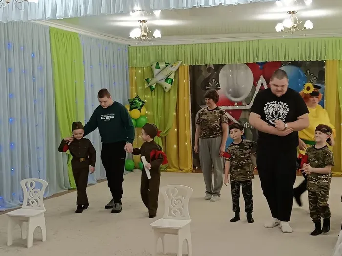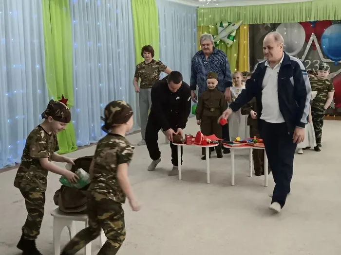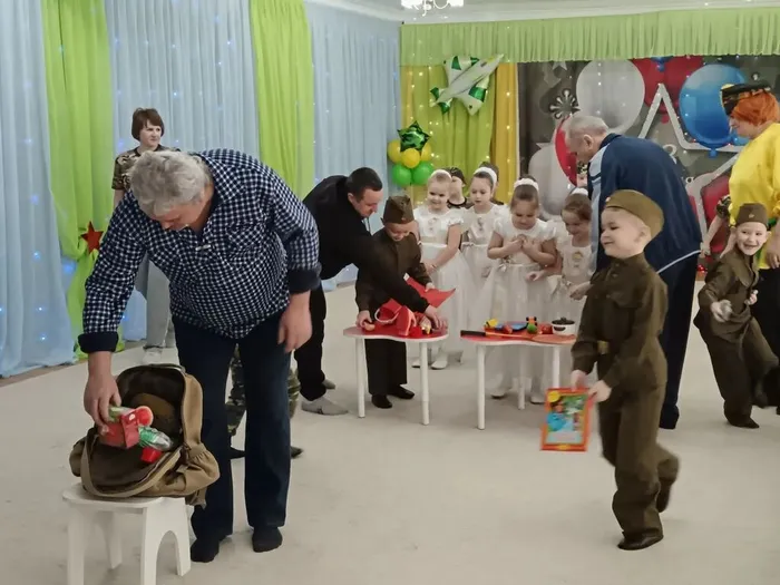 К ребятам пришли папы, дедушки, дяди.
