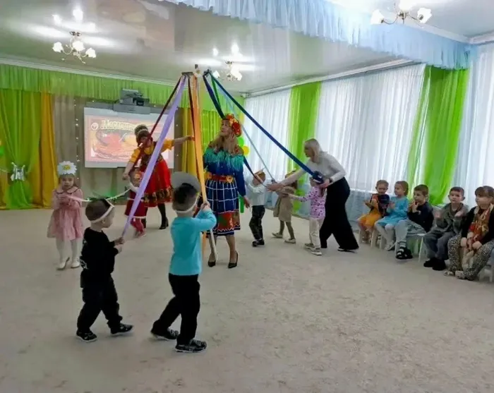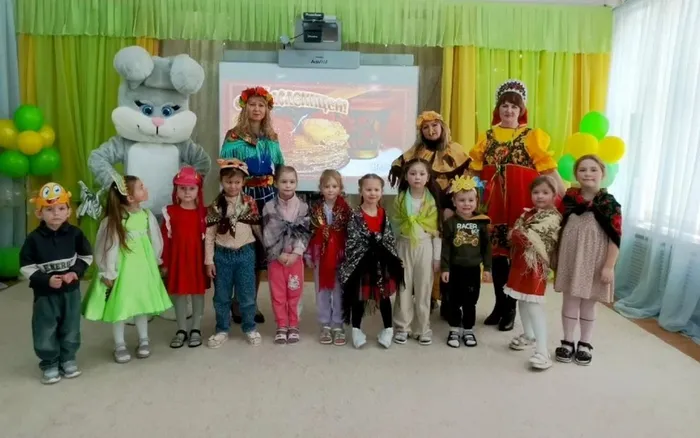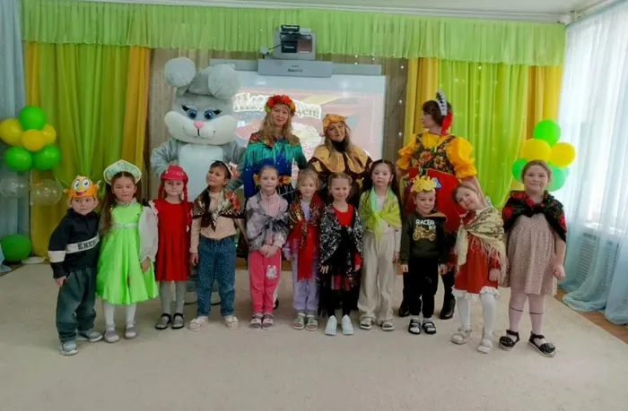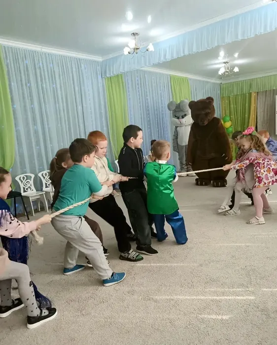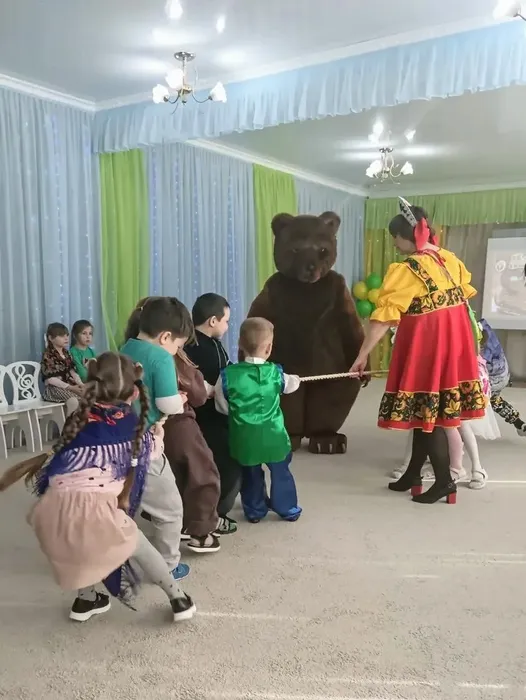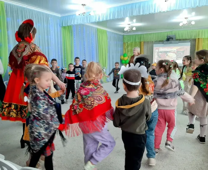Детей нарядили в яркиекостюмы,маски от чего они пришли в неописуемый восторг. Программа развлечения получилась очень веселой. К ребятам на праздник заглянули: Девица – Краса, Зимушка-Зима, Зайка, Медведь, Баба Яга, которые под звуки русской народной музыки устроили для всех ребят веселые хороводы, пляски,игры, соревнования.
