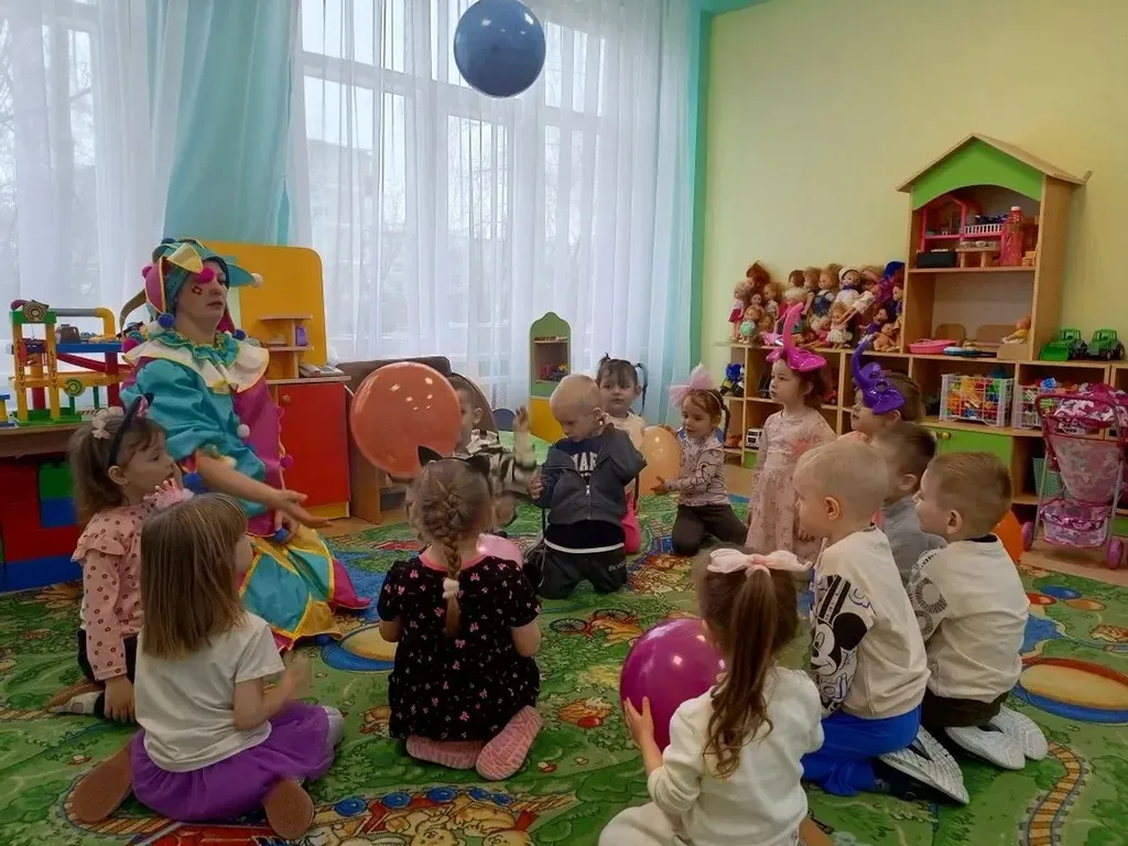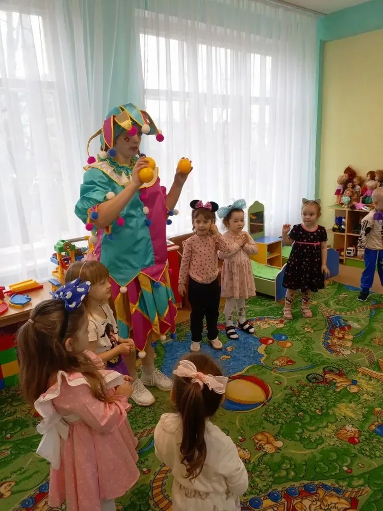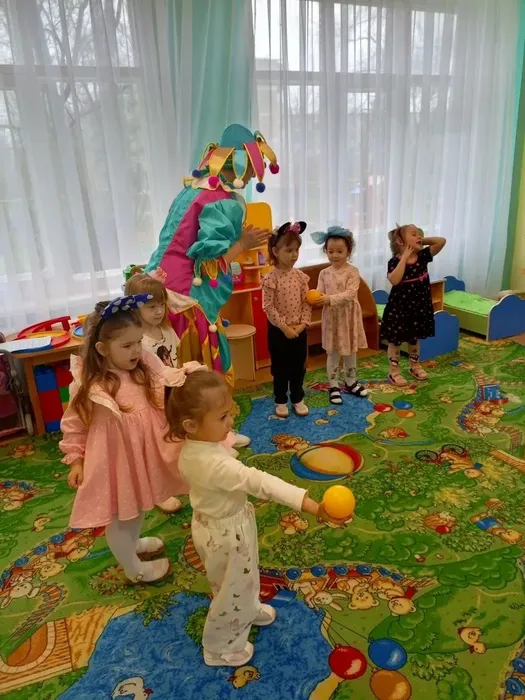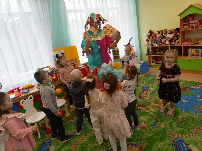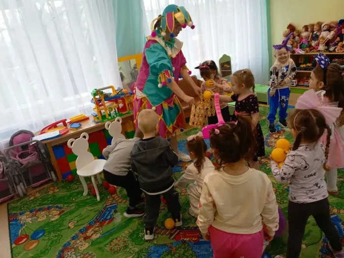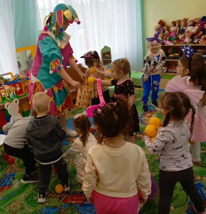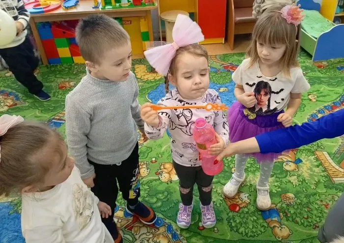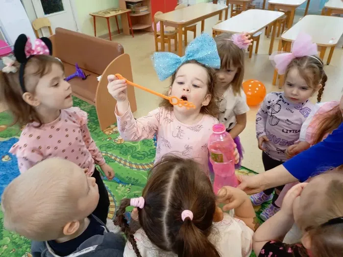 В месте с весёлой гостьей дети отгадывали загадки, танцевали, резвились, пускали мыльные пузыри🫧