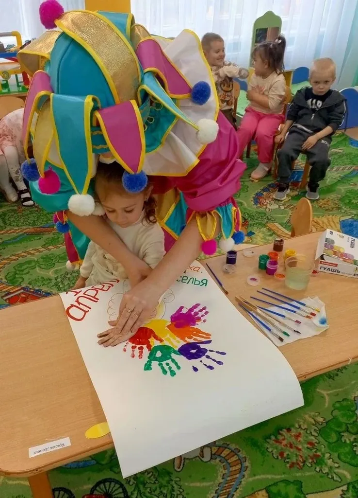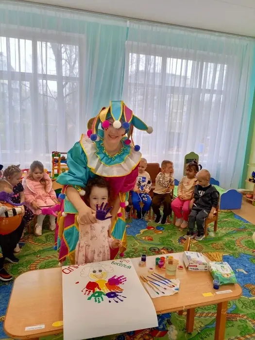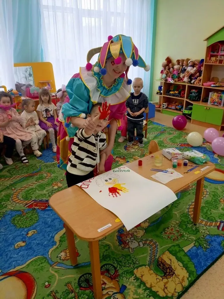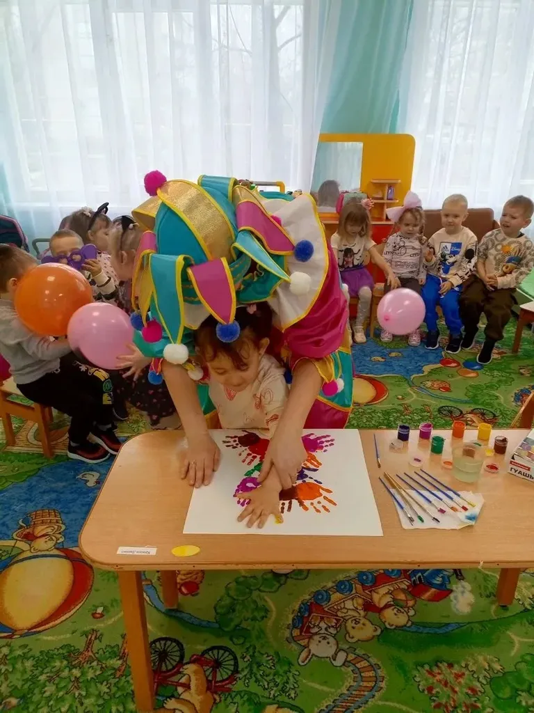 забавного клоуна с элементами нетрадиционной техники