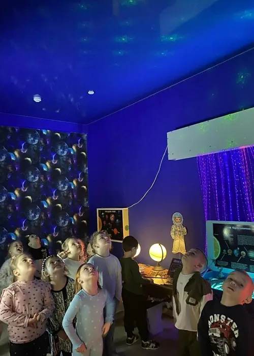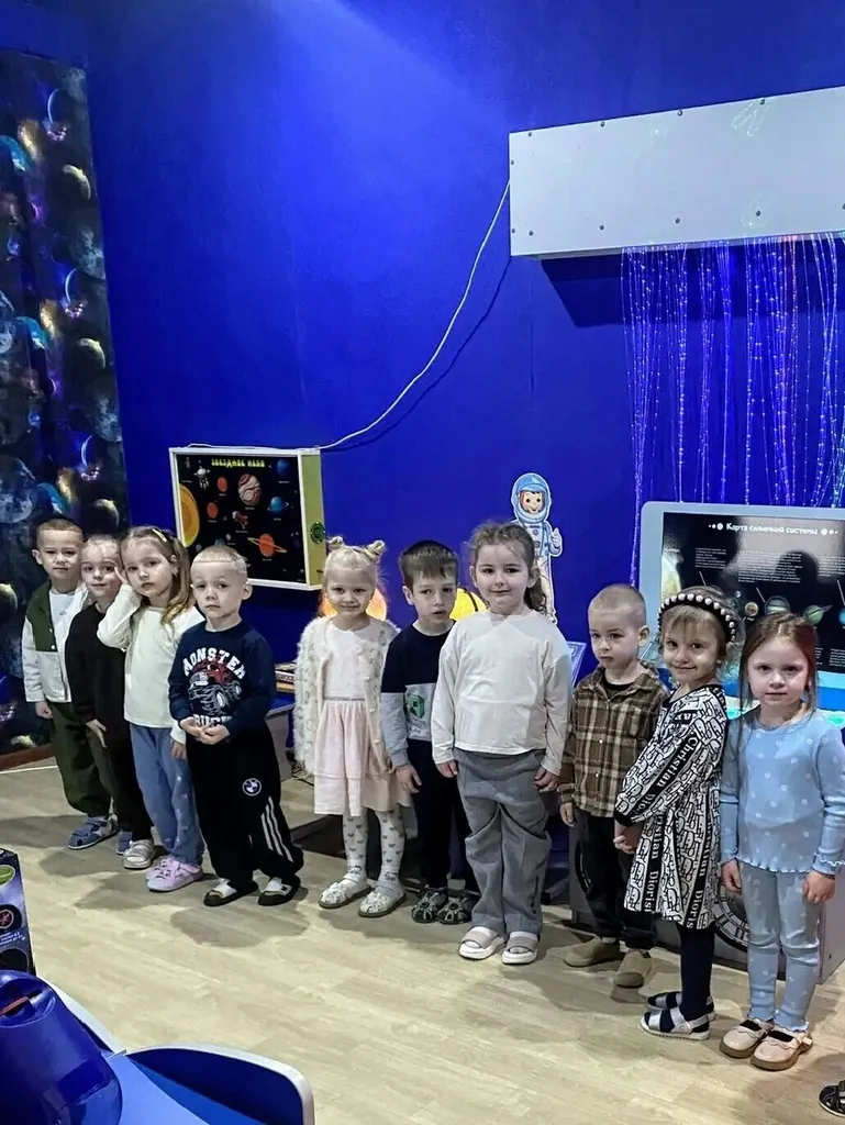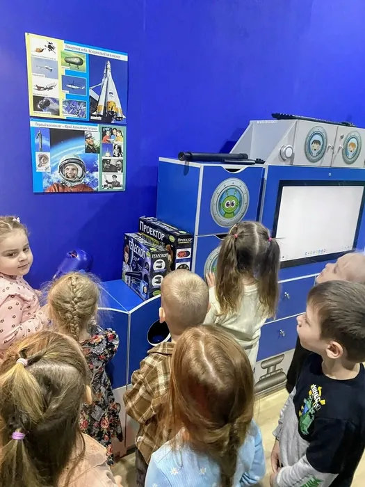 в средней группе «Пчёлки» прошло увлекательное тематическое занятие «Путешествие к звёздам». Воспитанники отправились в захватывающее космическое приключение, полное открытий и веселья, совершив экскурсию в комнату «Космодром» в нашем саду. Восторгу ребят не было предела, ещё бы, чего там только нет: фото-архив космонавтов, модели ракет, различная детская литература о космосе, макеты планет.