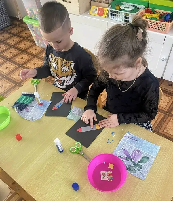 Так же ребята мастерили, с увлечением вырезали детали, клеили и создавали свои «космические корабли».