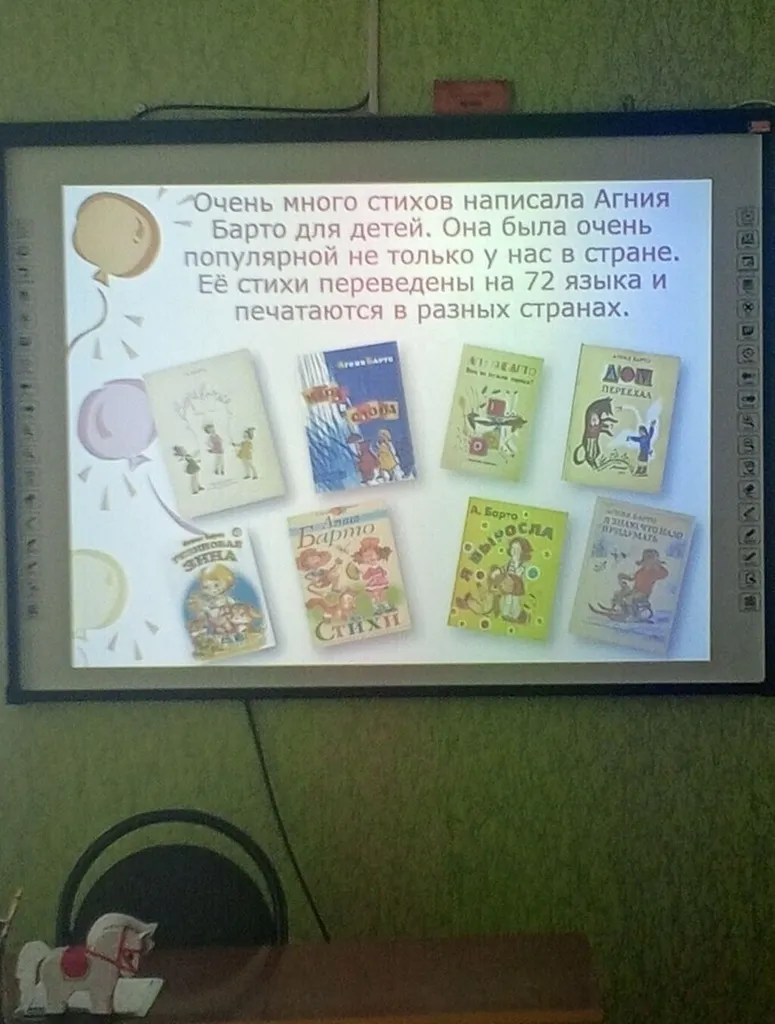 Библиотекарь Наталья Викторовна рассказала о жизни Барто, показала яркую презентацию.