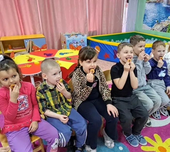 Приняли участие в интересной артикуляционной гимнастике с помощью сушек. Вспомнили пословицы о хлебе и объяснили их значение. В конце занятия ребята посмотрели мультфильм «Колосок» и с удовольствием съели хлеб с солью!