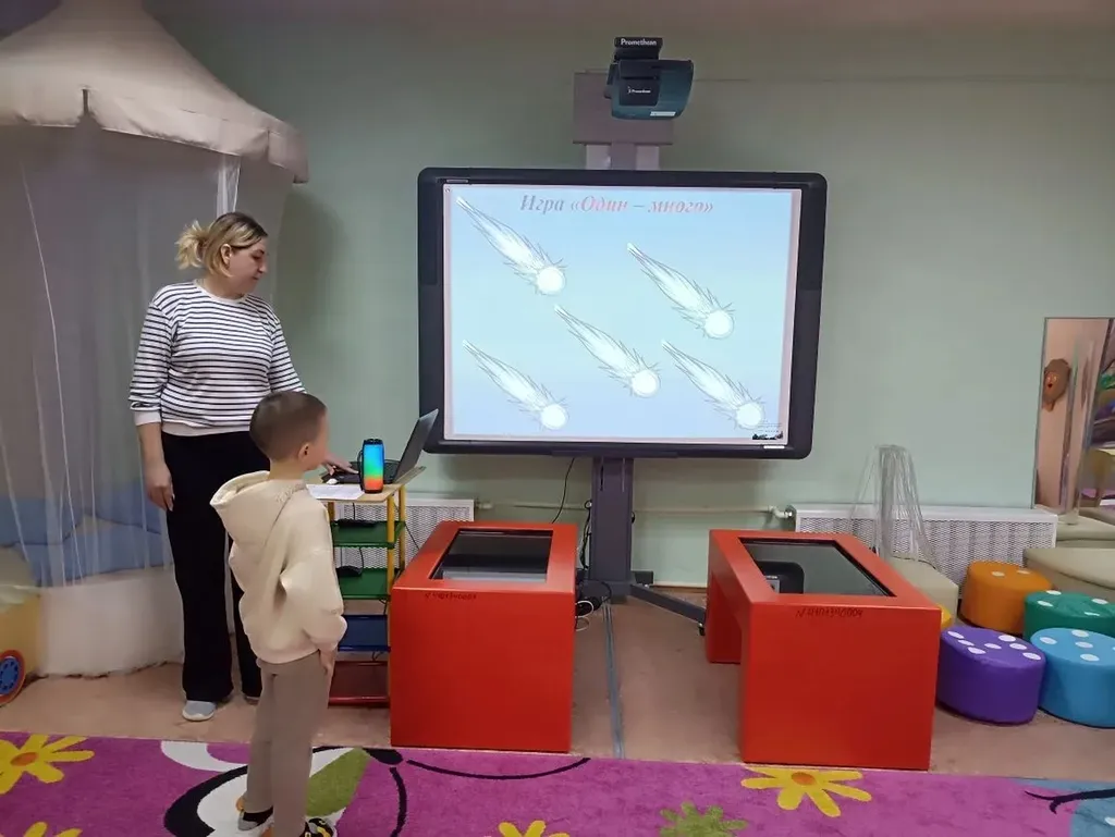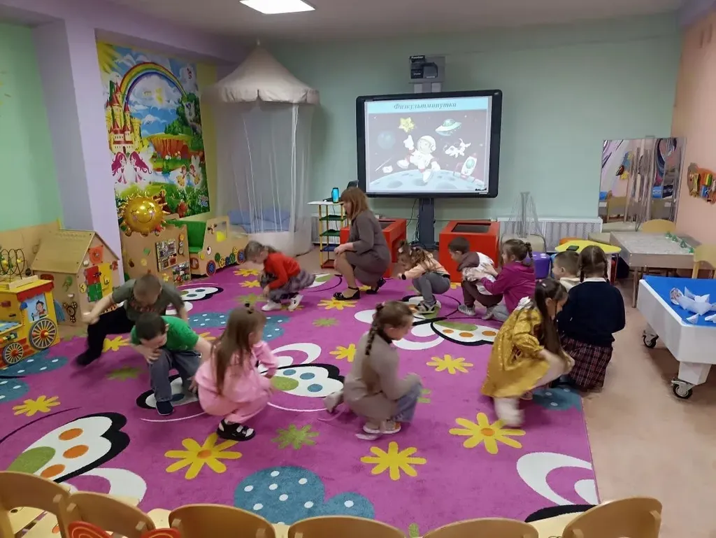 Дошколята с большим интересом посмотрели красочную презентацию «Первые космонавты», активно участвовали в интерактивной игре, где смогли «побывать» в роли космонавтов!